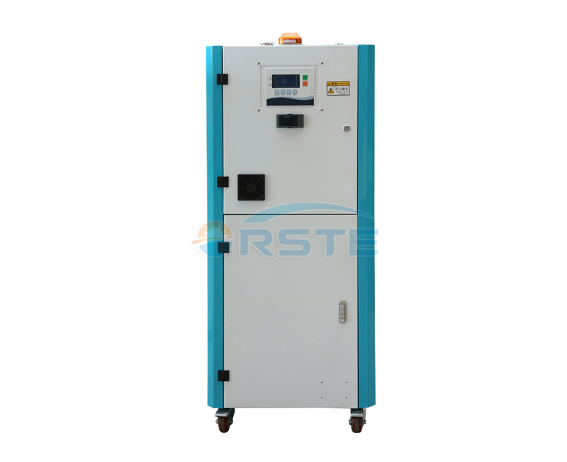 在轉輪除濕機內部,蜂巢轉輪密封分為除濕、冷卻和再生三個區域。從干燥桶回來的濕熱空氣經冷卻后吹入轉輪,空氣中的水分被轉輪吸附,然后轉輪轉動,吸附水 分的區域成為再生區域,所吸附的水分被加熱空氣所帶走。兩股空氣同時作用于轉輪上,隨著轉輪緩慢轉動,原料中的水份不斷的被帶至轉輪吸附又被再生空氣所脫 附并排出,從而形成穩定的低露點空氣,加熱至干燥原料所需的溫度后被吹入干燥桶中,形成密閉循環,對原料進行除濕干燥作業。