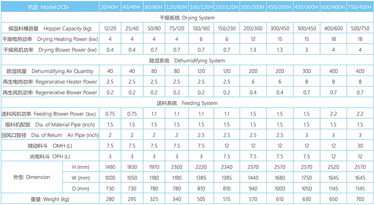 8. 可選配光學級料斗干燥機,以適應光學級和食品級產品的生產;