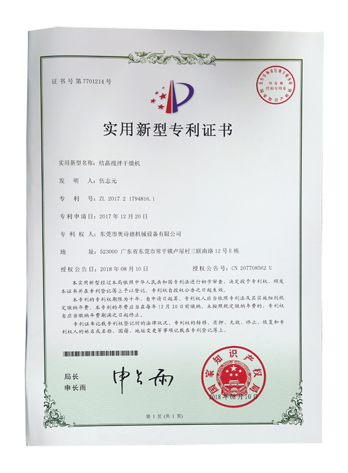 蜂巢轉輪式三機一體除濕干燥機高新技術產(chǎn)品證書